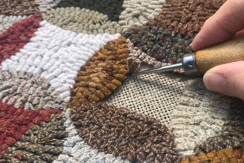 - Ручной тафтинг. Пряжу продевают в специальный пневматический инструмент, похожий на пистолет, и с изнанки пробивают через основу. Для закрепления стежков с обратной стороны используют латекс. Закрывают подкладкой из хлопка. Это способ распространен на Востоке и сегодня.